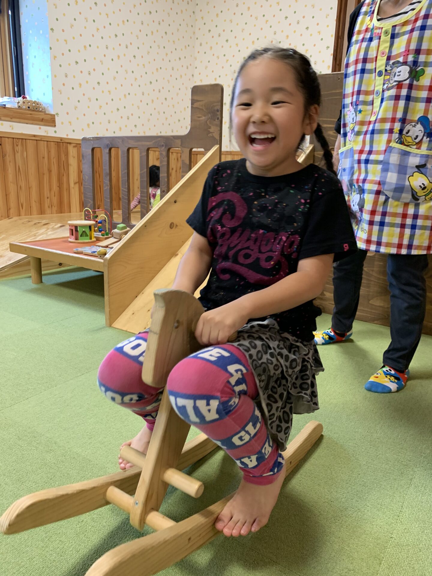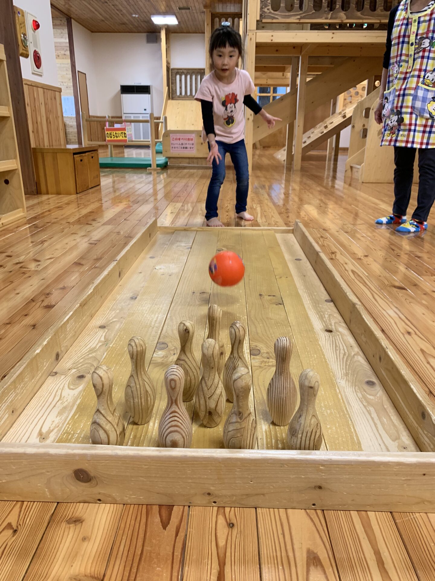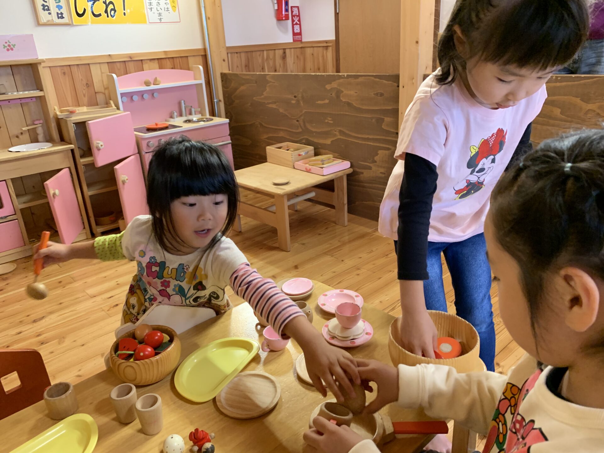 まずは、お約束事を先生と確認し、木のおもちゃで遊びました♪